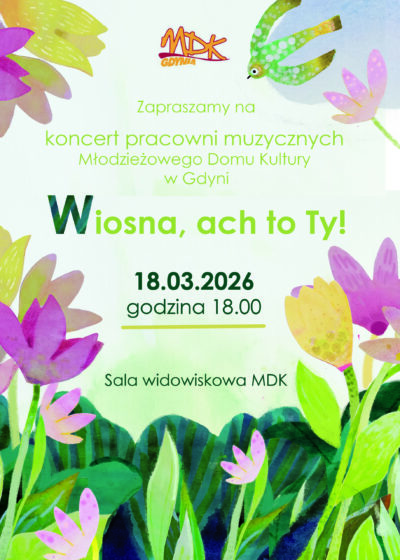 Zapraszamy na koncert pracowni muzycznych „Wiosna, ach to Ty!” 18.03.2026 r., g. 18:00 Sala widowiskowa MDK